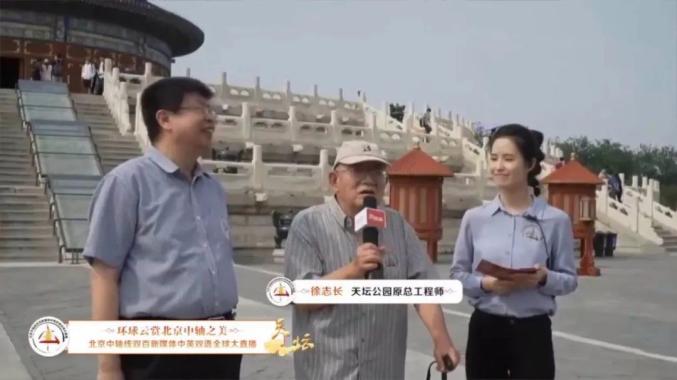 天坛直播现场,北京大学中文系教授张颐武和天坛公园原总工程师徐志长带领网上的观众一路从祈年殿、丹陛桥、回音壁、皇穹宇走到圜丘,在讲解中国祭天文化的过程中,如同带领观众抚上中国文化的脉搏,也不知不觉将朴素、深邃、真诚,兼具古老和现代气质的北京形象展示在世人面前。