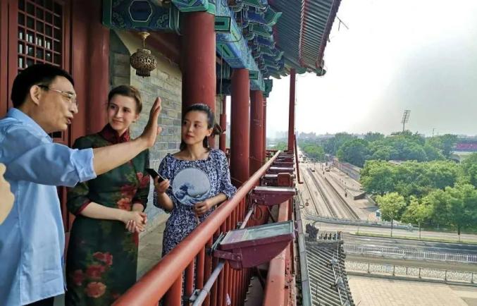 位于中轴线南端的永定门城楼始建于明嘉靖三十二年(1553年),是当年北京外城七座城门中最大、最壮观的一座,其建筑规格在北京外城中堪称最高。在这里,直播嘉宾北京史研究会会长李建平向网民介绍了北京中轴线整体历史,解读中轴线前后起伏、左右对称的空间布局,并围绕中轴线的文化内涵进行了讲解。原东城区文物管理所副所长、现袁崇焕祠所长李岩带大家参观永定门城楼,一起观看城楼二层《永定门往事》、《中轴线的故事》图片展。