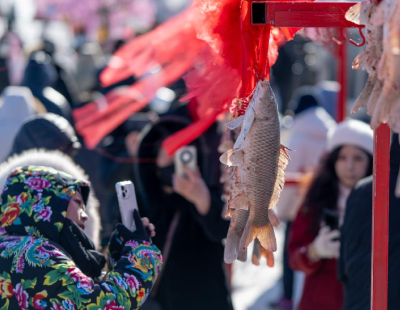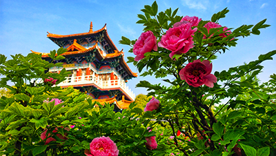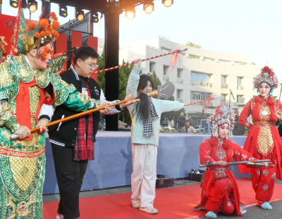 两位校园主播在中心花园毕业生合影框合影。(光明网记者 杨亚楠摄)