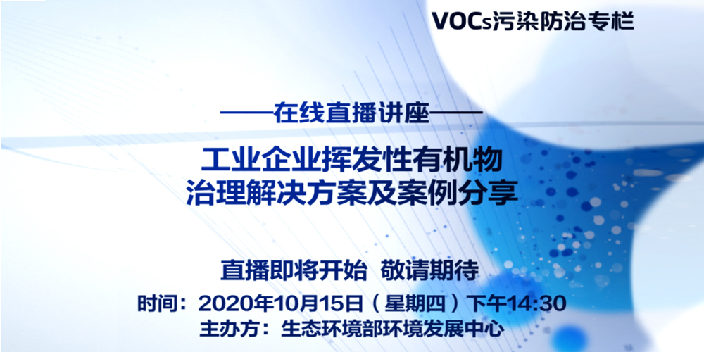 直播内容:本期直播主题为“工业企业挥发性有机物治理解决方案及案例分享”,将关注实际VOCs治理和技术应用过程中的典型案例,分享在一线治污过程中如何选择技术,并通过技术应用和过程管理实现VOCs的减排控制。