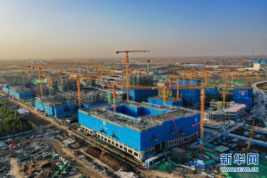 这是11月6日拍摄的河北雄安新区商务服务中心建设现场(无人机照片)。新华社记者 牟宇 摄