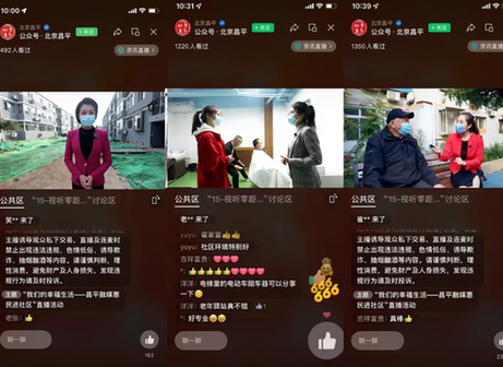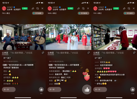 近日,延庆区融媒体中心、昌平区融媒体中心和顺义融媒体中心分别举办北京视听零距离“我们的幸福生活”优秀短视频展播延庆区专场、昌平区专场和顺义区专场活动,“北京延庆”“北京昌平”和“北京顺义”抖音、快手、视频号、APP等区融媒矩阵平台同步直播活动。直播中展播各区“我们的幸福生活”优秀短视频作品,展现平凡人物在新时代自立自强的精神面貌;主播带你走进老旧小区改造后的新社区,展现新社区美丽家园和共建共治共享的“昌盛模式”;主播带你探访社区居民现实生活,听社区老人们说今天的幸福满满。直播活动吸引了总计 7万余人在线观看,积极为直播点赞叫好,点赞量过3万,也吸引众多人参与互动,热评今天的好日子。
