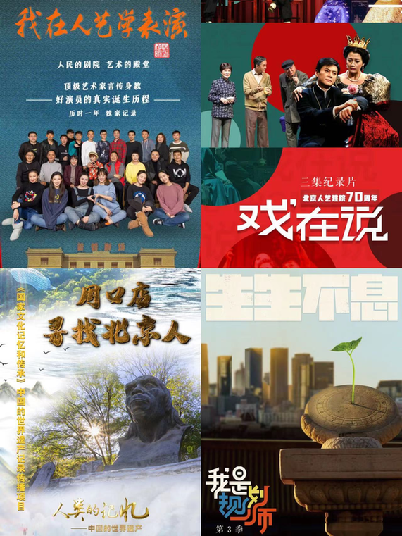 《我在人艺学表演》通过蓝天野、吕中、濮存昕、冯远征、宋丹丹、岳秀清、龚丽君等表演艺术家的言传身教,见证十五位学员在声台形表全方位训练中经历挑战、挫折与演技的蜕变。《戏,在说》忠实记录人艺建院70周年前后,发生在台前幕后的鲜活故事,定格老戏骨和新一代演员们的精彩表现。《人类的记忆——中国的世界遗产之周口店寻找北京人》充分挖掘大量第一手鲜活资料,以一代代中国考古人鲜为人知的日记为线索,以全新的视角拍摄并记录周口店北京猿人遗址前世今生。《古道足音》《我是规划师(第三季)之青山》以北京城市复兴为题材,深入探讨首都城市战略定位。