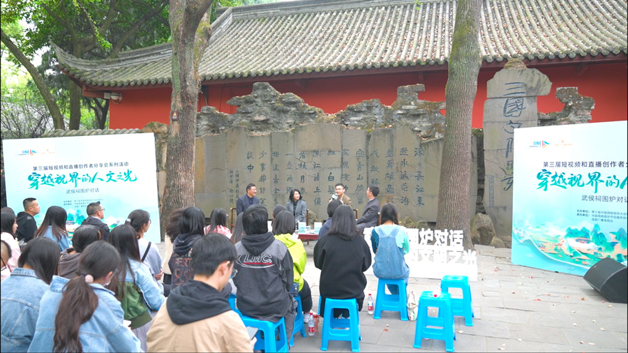 3月30日下午,第十届中国网络视听大会特别活动之“第三届短视频和直播创作者年度分享会系列活动--武侯祠围炉对话:穿越视界的人文之光”(以下简称“围炉对话”)在成都武侯祠博物馆举行。