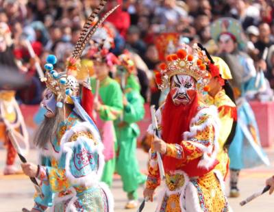 5月10日,天津市武清区,2022“中国非遗年度人物”揭晓仪式现场,台上的表演者们正在表演节目《和合共生》。中青报·中青网记者张玉佳/摄