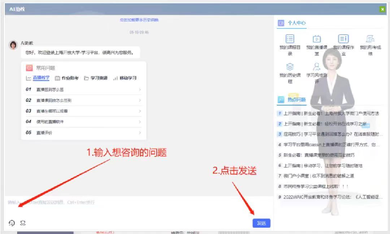 上海开放大学探索涵盖教学评训毕等多个重要环节的人工智能赋能教学全过程场景设计,其中“智能助教”“智能助学”“智能助评”“智能助训”“智能助‘毕’”等为教师的教学和学习者的学习体验提供个性化的高效辅助。其中,“智能助教”助力教师高效完成教案设计、课件制作等工作;“智能助学”为学习者提供课程直播回放视频精准解答和个性化辅导;“智能助评”提供学生多维度画像分析和学习建议;“智能助训”通过建设开放学习元宇宙,营造情景化教学实训环境,为师生带来更具个性化和趣味性的教学体验;“智能助‘毕’”对学生论文撰写提供一对一精准辅导。