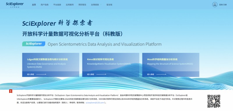 面对国际复杂多变的科技竞争环境,快速感知科学研究态势已成为科研工作者面临的重大挑战。SciExplorer平台以“科学研究态势的整体感知”为核心目标,从文献数据信息的统计探索、网络关联探索以及全局科学结构探索等三个层次来深入探索文献数据信息。据此,该项目组研发了“科技文献治理与统计分析系统”“知识矩阵可视化分析系统”以及“科学结构图叠加分析系统” 三大子系统,为科研人员提供全方位、多层次的数据分析支持。