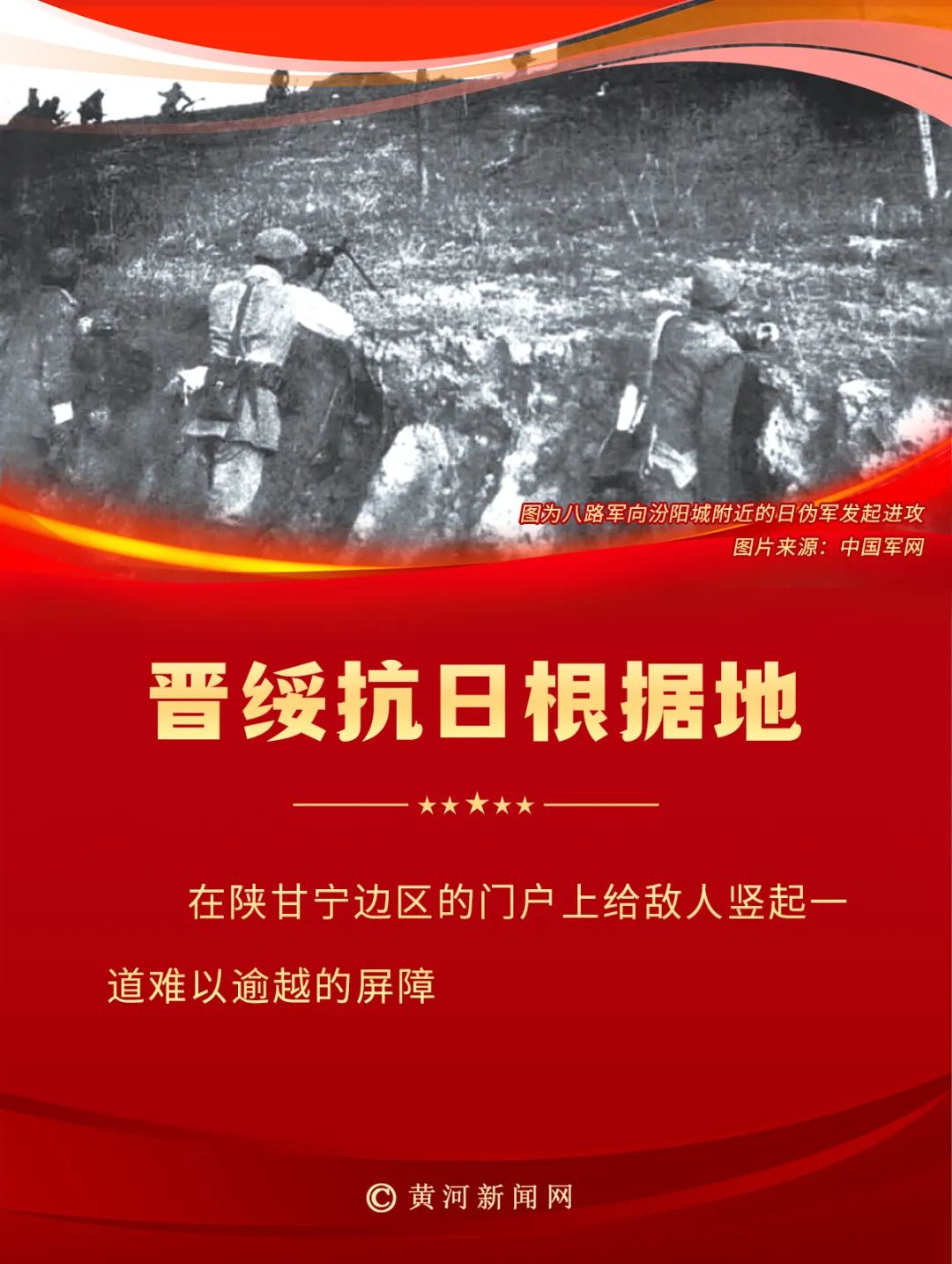 晋绥抗日根据地在陕甘宁边区的门户上给敌人竖起一道难以逾越的屏障,使日军始终未能越过黄河进犯陕甘宁边区,保卫了延安和党中央,并确保了党中央与敌后各根据地联系的交通线。