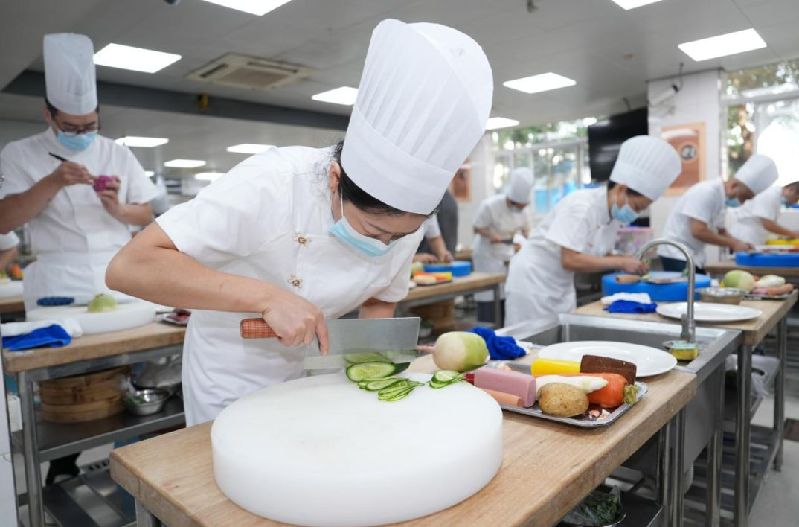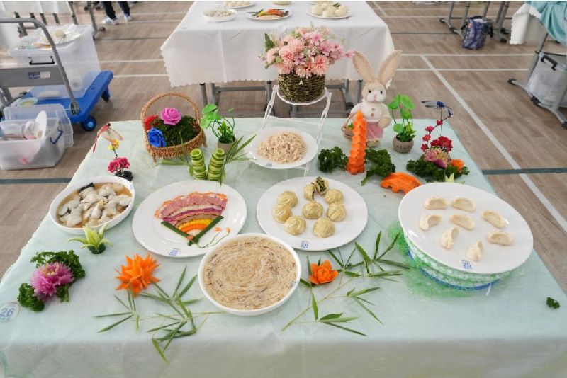 在营养员赛道中,选手们需在规定时间内独立完成艺术冷盘制作、婴幼儿餐点烹饪和展台布置,不仅考验“色、香、味、形”的基本功,更要求科学掌握婴幼儿营养膳食搭配。参赛作品中,创意冷盘造型独特,中式面点精致细腻,整体呈现赢得了评委的一致好评。
