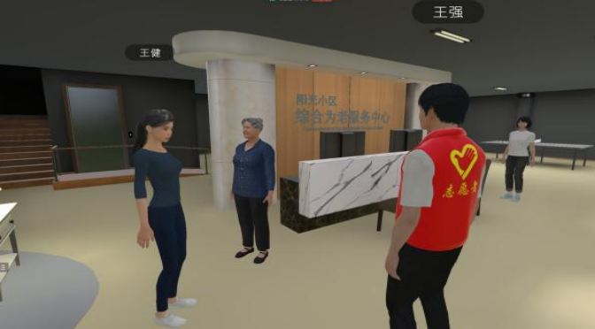在老年护理相关课程中,老年认知障碍照护实训场景借助混合现实技术,学习者可亲身体验认知障碍老人的感官世界—视野模糊、耳朵幻听、空间感失调,从情感层面建立深度同理心;学习者可化身家属、志愿者等多元身份,在虚拟小区、家庭、综合为老服务中心等场景中,以游戏闯关形式完成照护任务,如协助老人记忆训练、处理情绪波动等;设计“老人丢钱包时的沟通策略”“家属不理解照护方案时的协调技巧”等情境,让学习者在虚拟环境中反复演练决策,既规避真实伦理风险,又强化职业底线意识。
