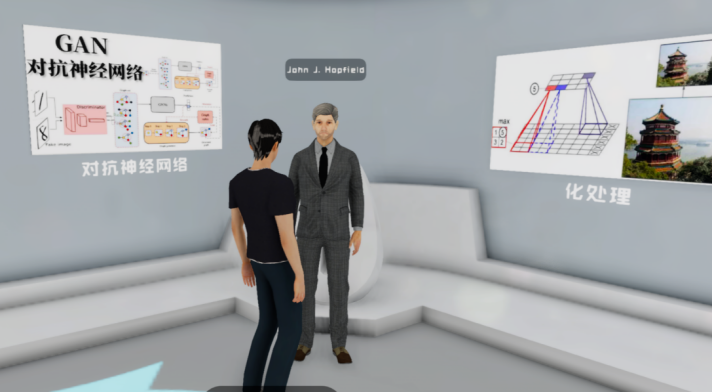 理工学院的人工智能导论课程教学中,在人工智能导论元宇宙场景的展厅中,通过AI助教将抽象的算法理论转化为可视化内容,以“翻转课堂+案例学习+协作探究”的模式,打破了传统编程教学的枯燥感,使学习者对 AI 技术的理解更深入,提升应用能力。