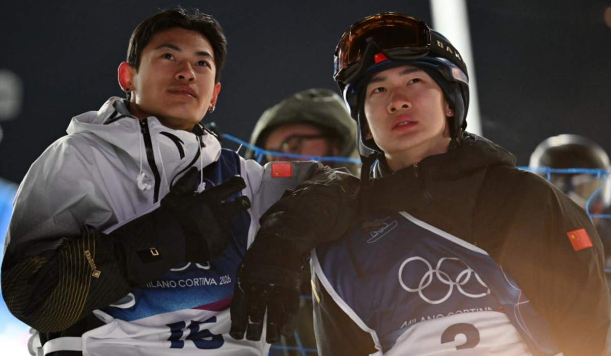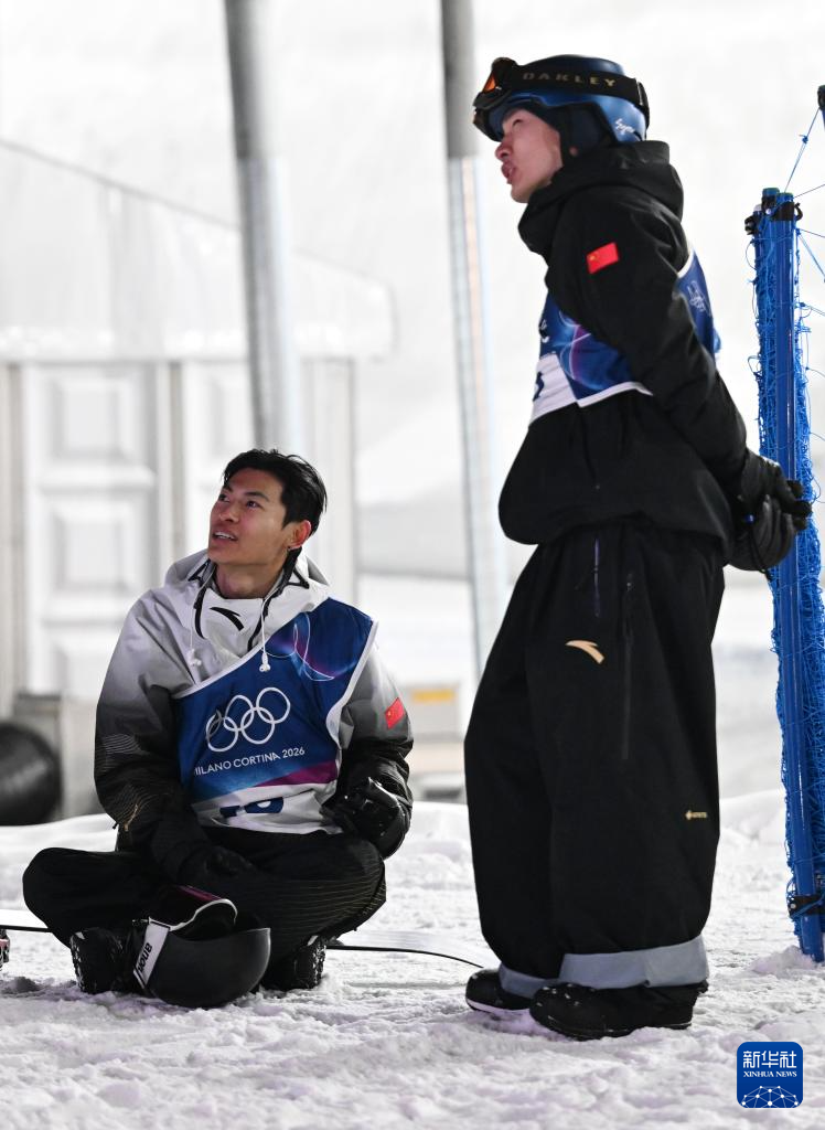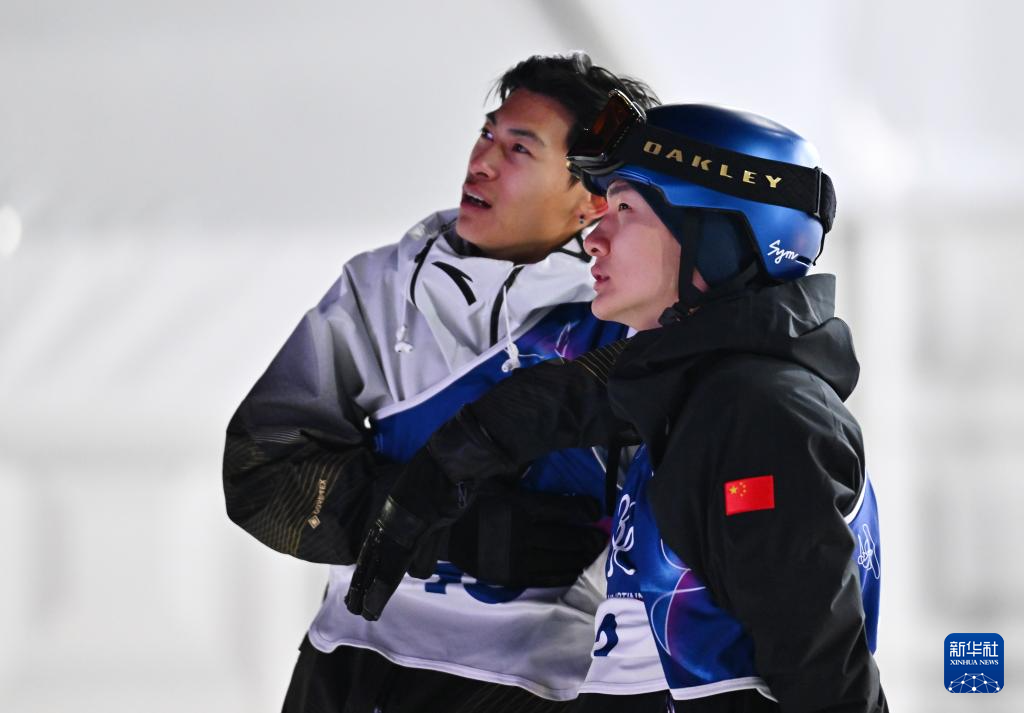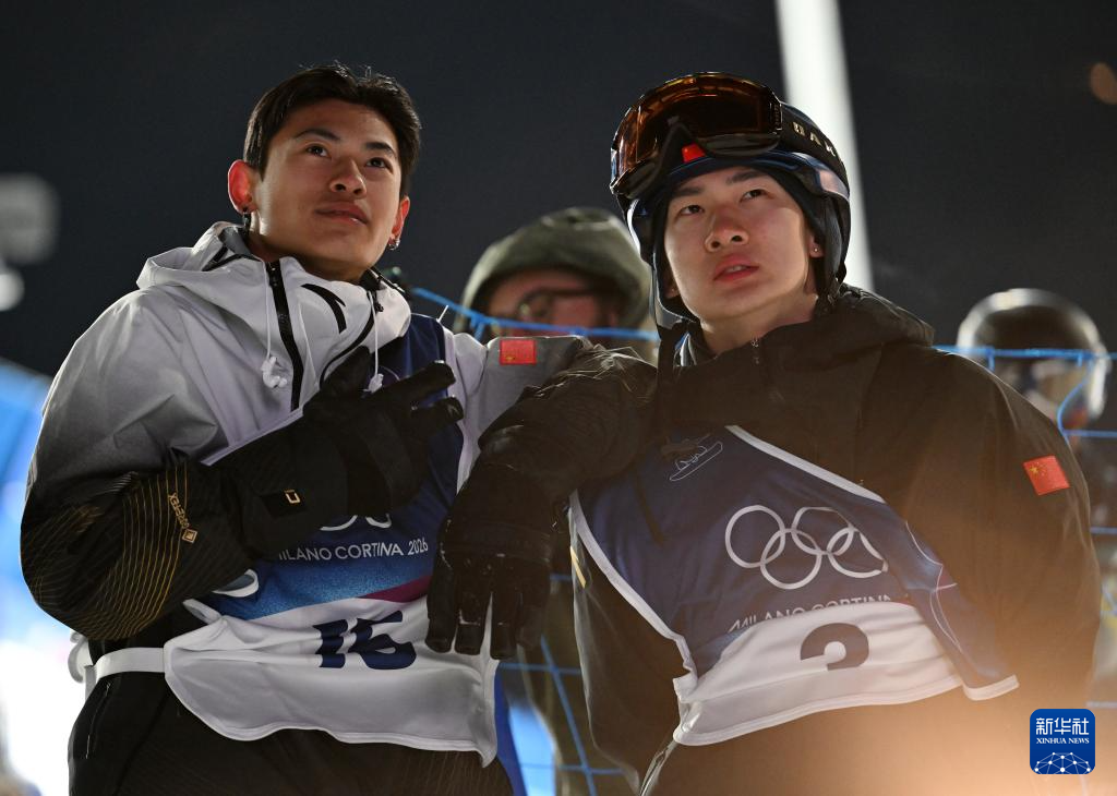 2月5日,中国选手苏翊鸣(右)和葛春宇在预赛第三轮后。苏翊鸣晋级决赛,葛春宇无缘决赛。