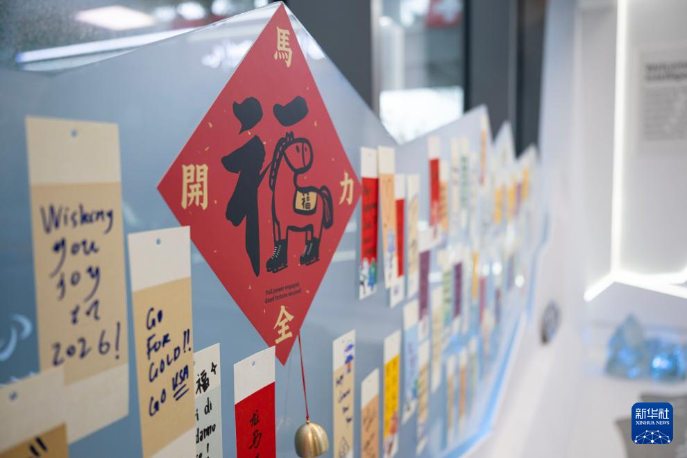 这是2月3日在意大利米兰奥运村拍摄的新年福字。