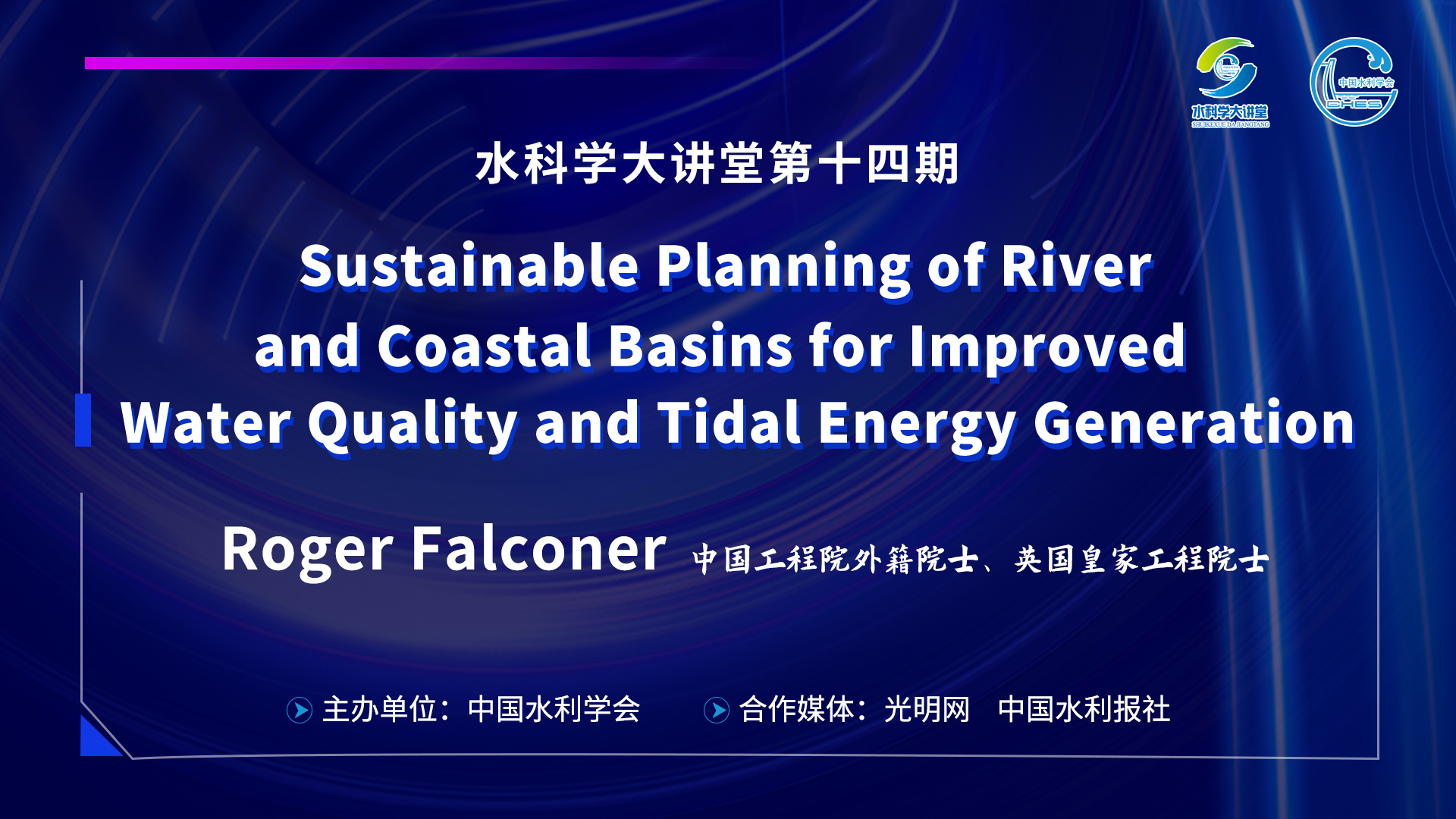 “水科学大讲堂”是由中国水利学会中国水利报社联合策划推出的直播品牌活动,旨在进一步增强水利系统干部职工及全社会科学爱好者的水科学意识。在这里我们将邀请院士、知名专家、科普大V围绕水利前沿、最新研究成果、水利未来科技创新发展趋势畅所欲言!本期内容,由中国工程院外籍院士、英国皇家工程院士Roger Falconer以《河流与海岸流域可持续规划——改善水质并开发潮汐能》为题作专题报告。(整理编辑:焦子原)