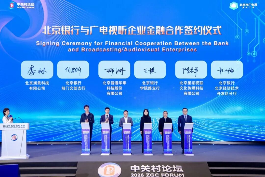 签约环节成为本次论坛的一大亮点。北京银行前门文创支行与北京澜景科技有限公司、北京银行学院路支行与北京智谱华章科技股份有限公司、北京银行北京经济技术开发区分行与北京星拓视联文化传媒科技有限公司分别签署金融合作协议,双方将聚焦超高清视频处理技术的研发突破、AIGC技术在视听内容生产中的创新应用以及虚拟制作基地建设与超现场项目的加速落地,共同探索金融与科技融合的新路径。
