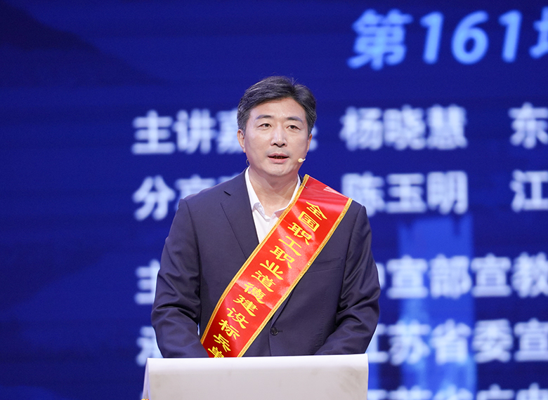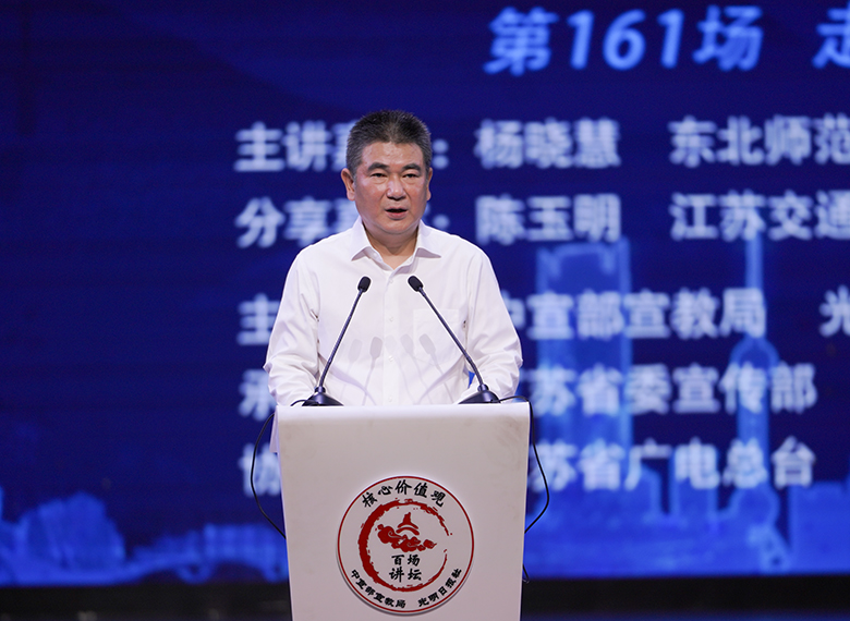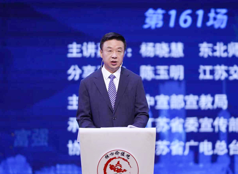 由中宣部宣教局、光明日报社共同主办,江苏省委宣传部、江苏省总工会、光明网承办,江苏省广电总台、南京市总工会协办的“核心价值观百场讲坛”第161场活动,邀请东北师范大学思想政治教育研究中心主任杨晓慧,作题为《新时代职业道德建设的守正创新》的主题演讲。同时,邀请江苏交通控股有限公司党委副书记陈玉明分享践行事迹。
