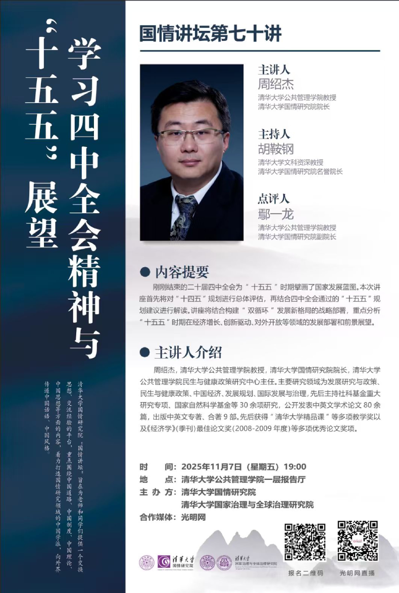 新中国的诞生是中国历史上翻天覆地的社会大变革,也是现代中国历史上前所未有的社会主义现代化大发展,还是当代世界历史上前所未有的人类发展奇迹。 中国现代化发展之路是从哪里起步的?是怎样创造的?又是怎样走进世界舞台中心,对人类发展做出巨大贡献的?为此,胡鞍钢教授以“中国现代化发展之路(1949-2019)”为题进行分享。【详细】