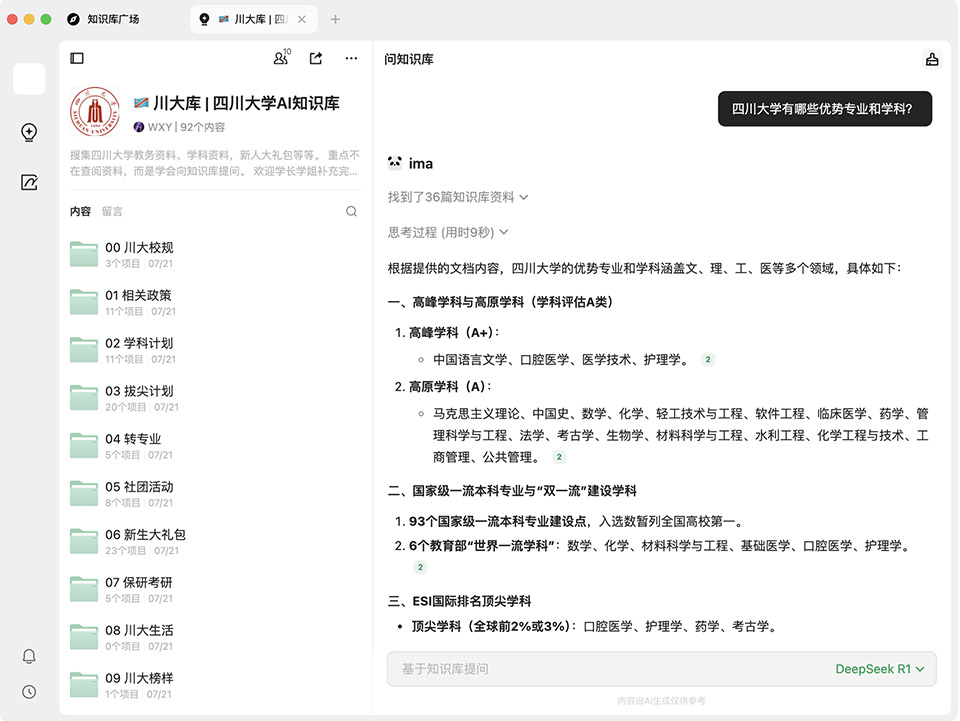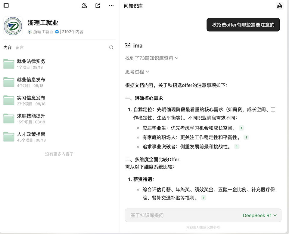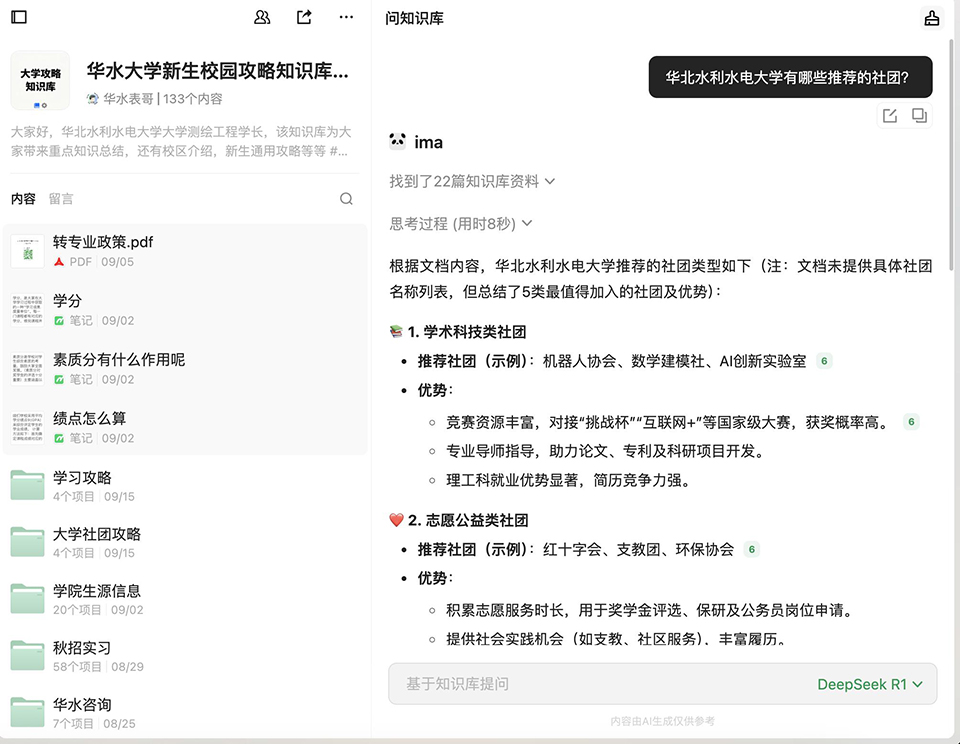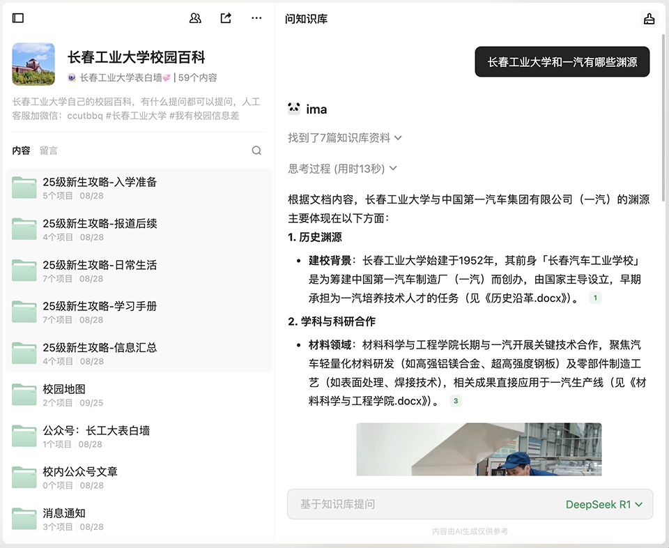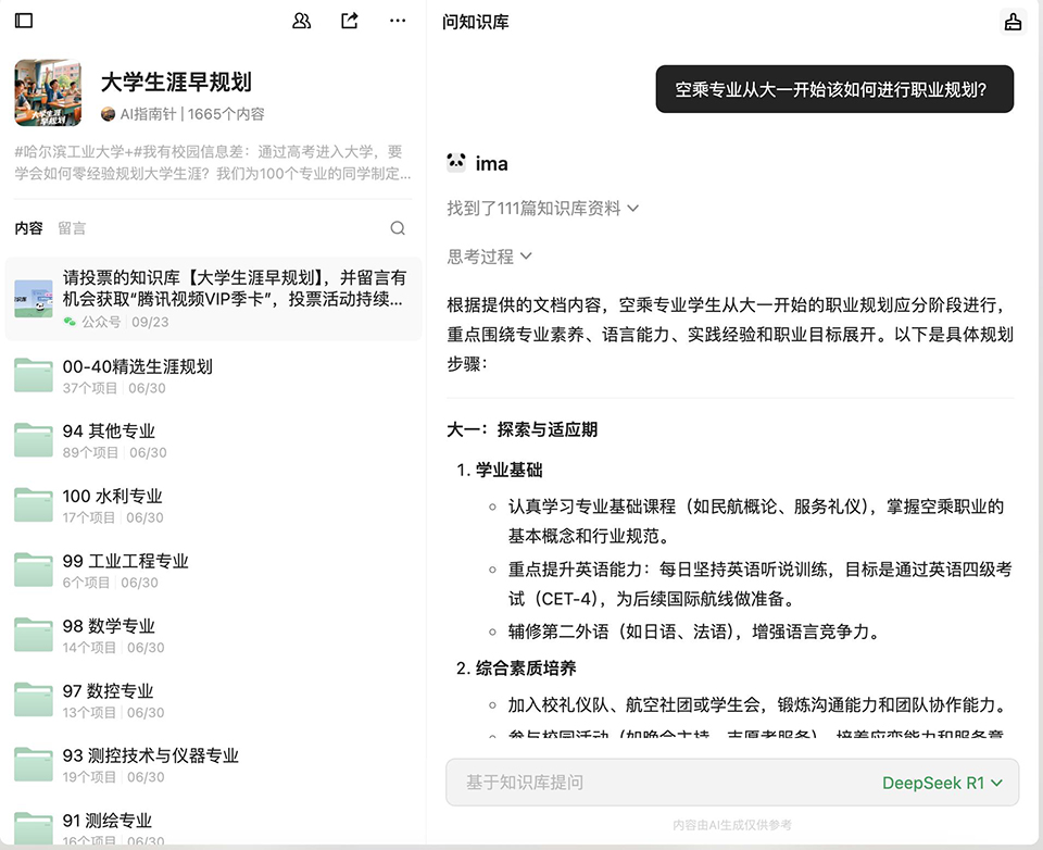 ima是腾讯旗下的AI工作台,以「知识库」为核心特色,并提供“问”“读”“写”智能新体验,目前已接入腾讯混元大模型和DeepSeek R1、V3模型。