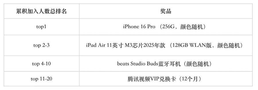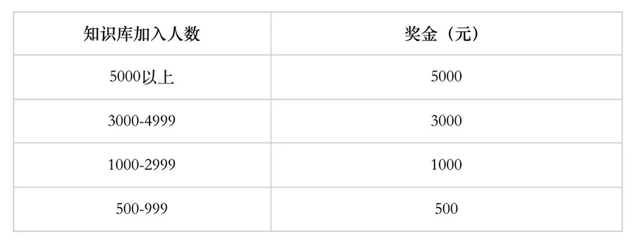基于参与活动的知识库累计加入人数进行知识库排名,对总排名前20名实物激励;数据统计2025年8月15日00:00至2025年9月15日23:59止知识库累计加入人数。