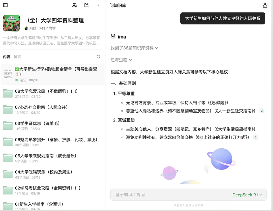 在ima,你可以搭建个人、团队和公开知识库,通过知识库问答有效防止AI幻觉,让生活、学习、工作的知识高效积累、触手可及。