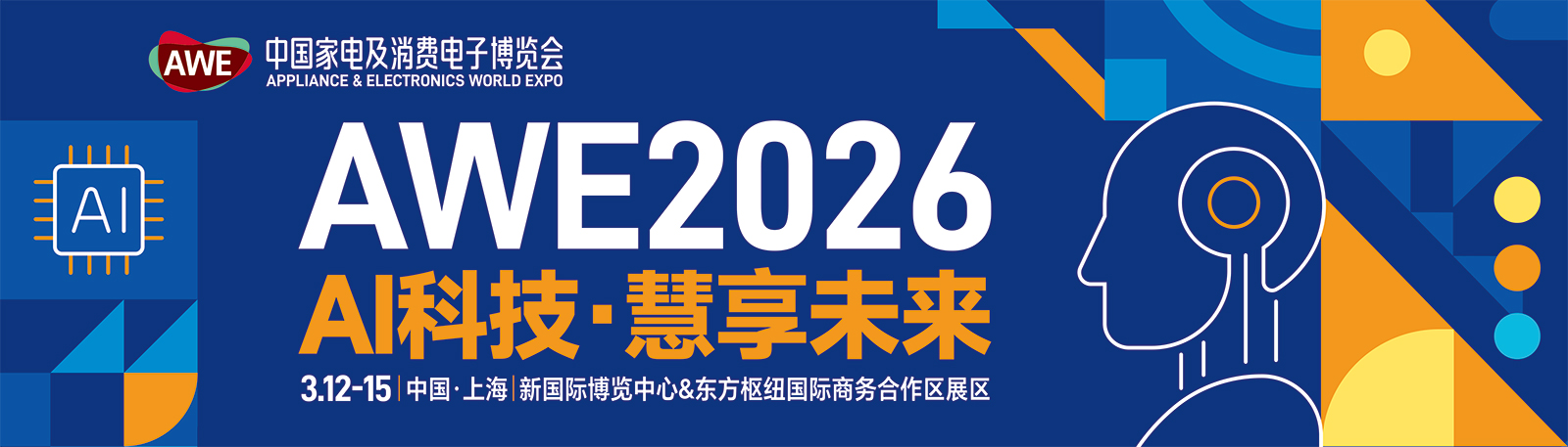 本届AWE将于3月12-15日登陆上海新国际博览中心,以“AI 科技・慧享未来”为主题,汇聚全球超千家参展企业,两大全馆包场的标杆级布局、十大超千平旗舰展区的战略级发布、超百款全球首发的重磅新品、百余家首次亮相的行业新面孔。