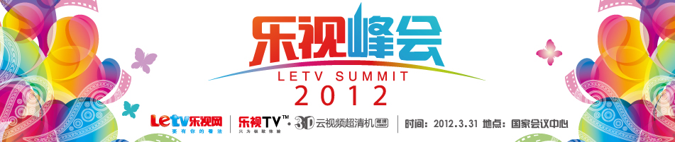 2012乐视峰会3月31日在北京国家会议中心举行,峰会由《互联网电视及付费视频的机遇与未来》、《天下剧 汇乐视-乐视2012年营销策略大会》、《“智能开放共赢,大屏成就梦想”-2012首届智能电视应用开发者大会》、《欢迎进入互联网大屏视界--2012乐视TV经销商大会》四场分论坛以及《第二届乐视影视盛典(2012春季)》等活动组合而成。