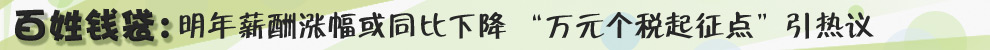 | “万元个税起征点”引发讨论 税负痛苦如何减轻? | | 个税话题总是社会一根敏感神经。近一段时间,关于“个税起征点能否上调至万元”的讨论一直在持续,在个税起征点每每成为讨论中的焦点之时,有关个税改革乃至税制改革的种种话题也会接踵而至。 详细>> |