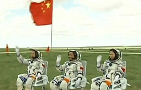 三位航天员自主出舱后向人们致意