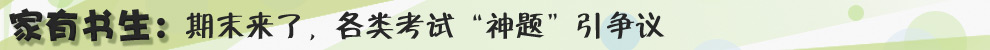 | 各类考试“神题”引争议 “神题”考不出素质 | | 大象把蚂蚁踩到骨折,怎么办?面包和馒头打擂,谁会赢?你觉得杜甫忙不忙?这些都是今年各类考试中出现的“神题”。对于这样的试题,媒体给出的评价是“新颖、搞怪”。事实上,“搞怪”倒是绰绰有余,“新颖”却远谈不上,某大学“西游记里有多少妖怪”的“神题”早“新颖”过了! 详细>> |